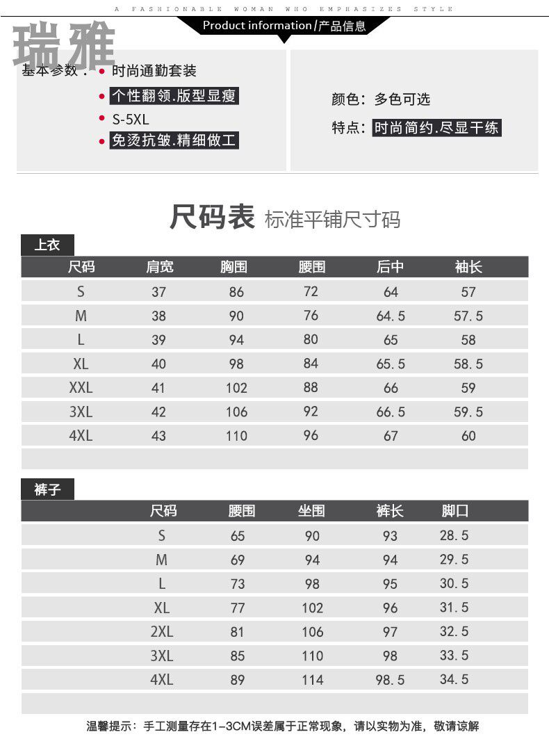 颜色分类: 单件蓝色西装外套 单件黑色西装外套 单件蓝色裤子 单件黑色裤子 蓝色西装外套+蓝色裤子 黑色西装外套+黑色裤子