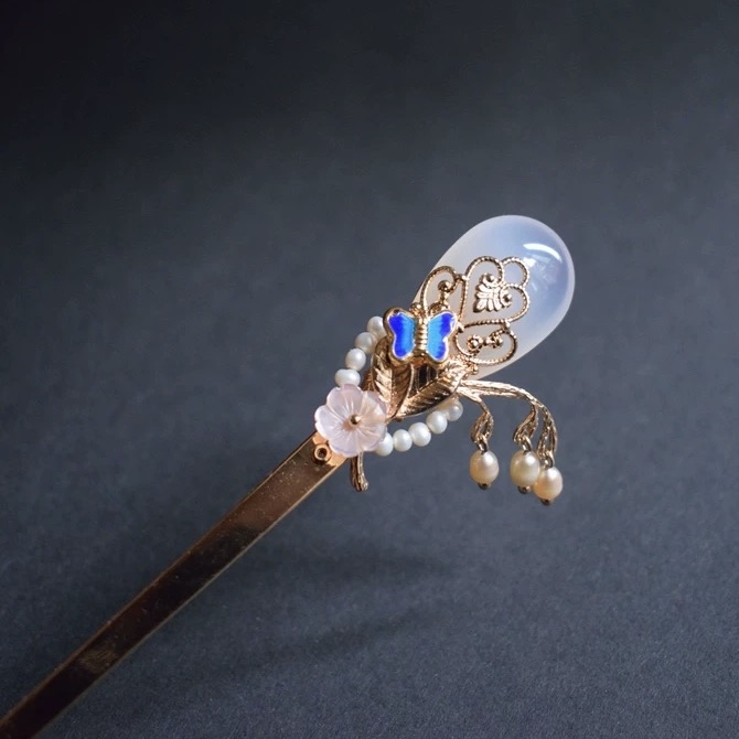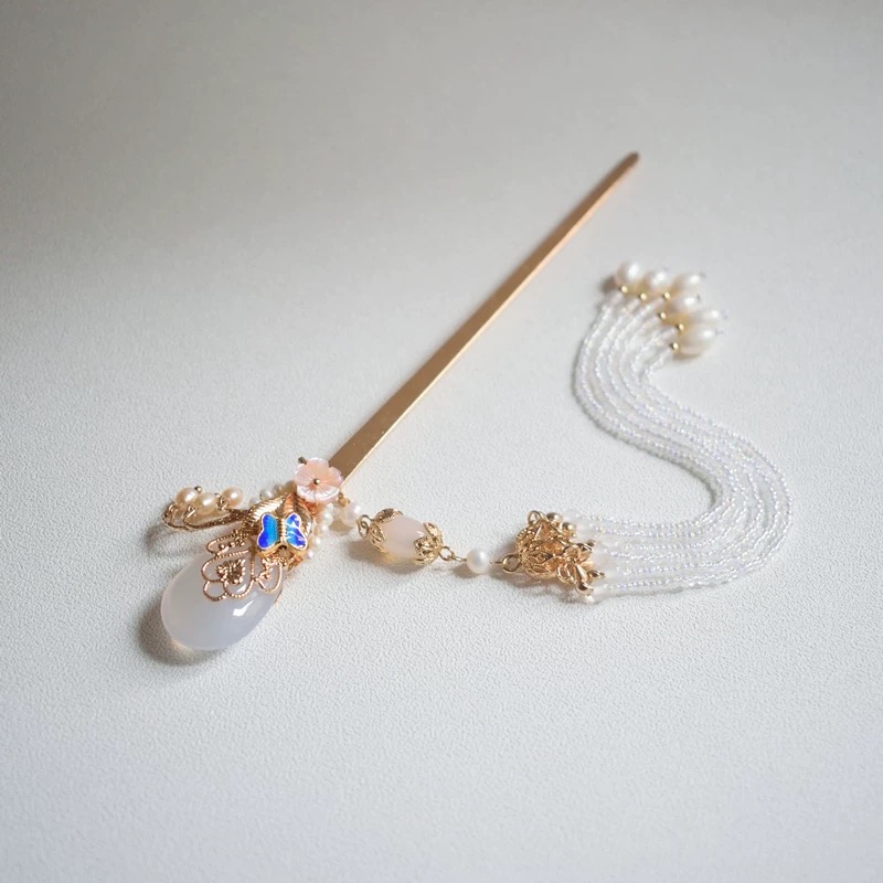 【参考尺寸】簪子全长约18.5厘米,流苏长约19厘米,簪头造型部分约3.8*4.8厘米