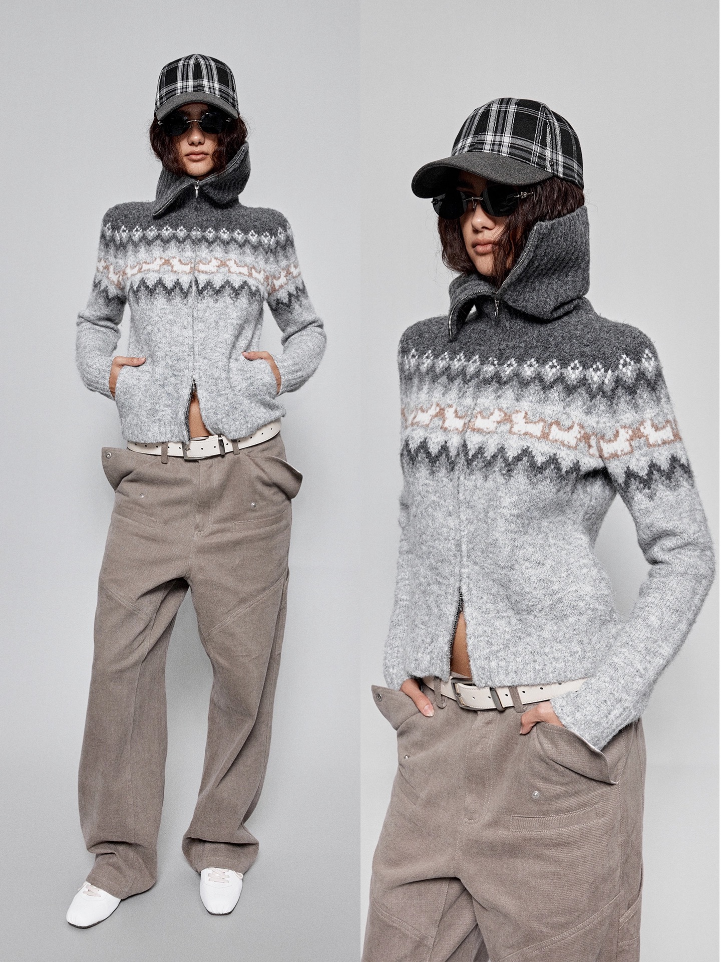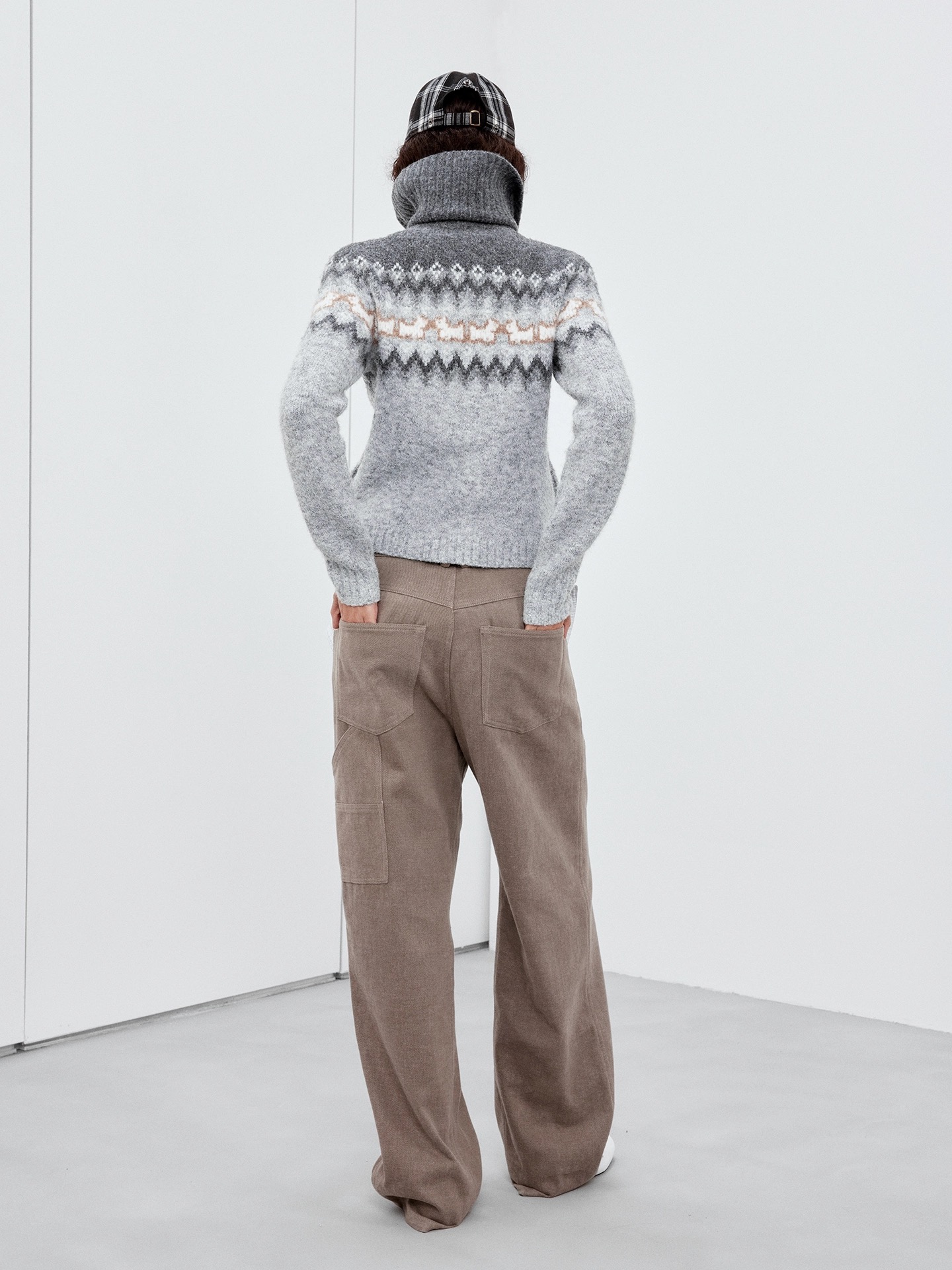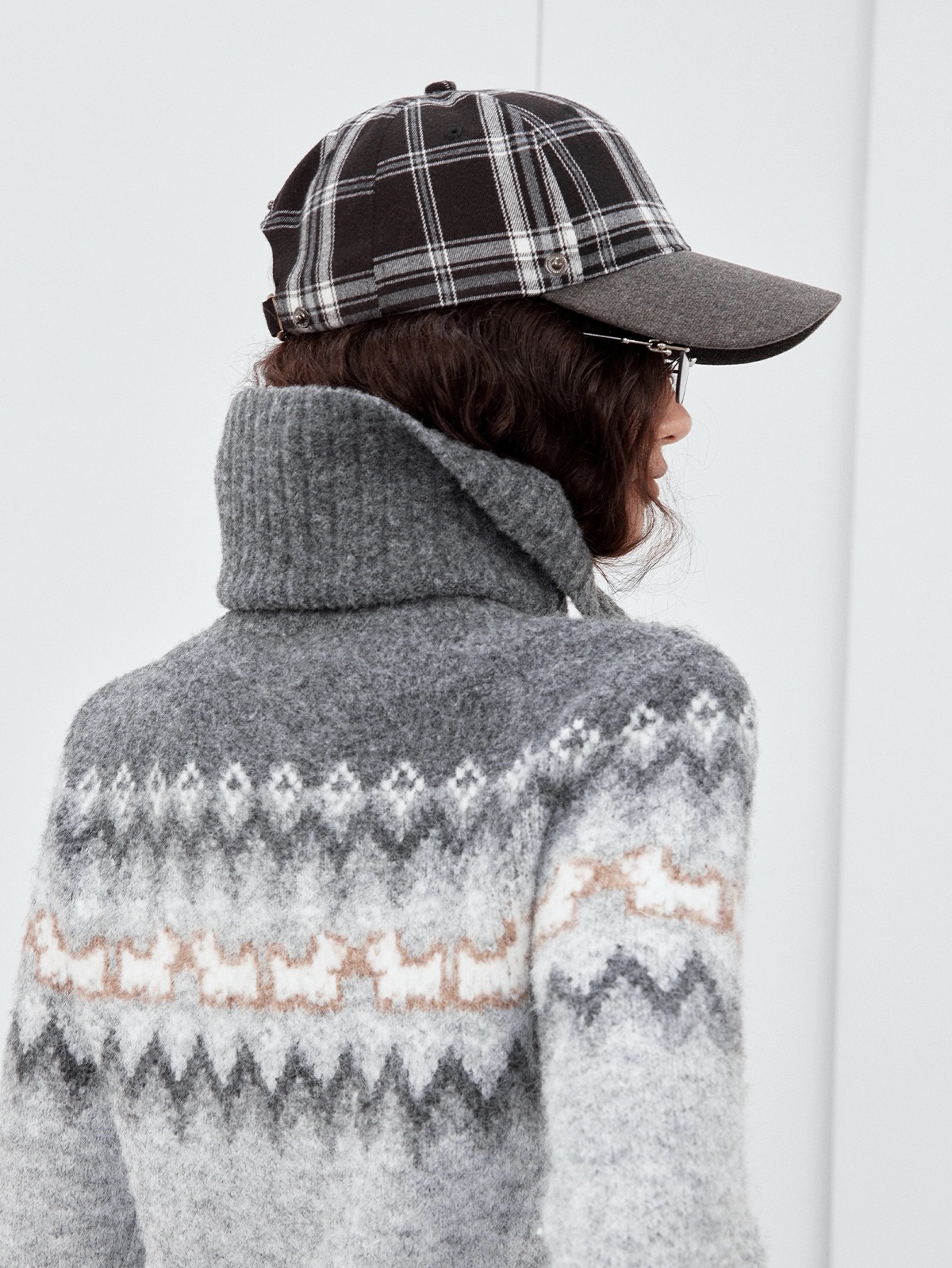 Eloberry【海岛之歌】2025秋冬新款费尔岛毛衣高领白色羊毛混纺提花冬季保暖女 S