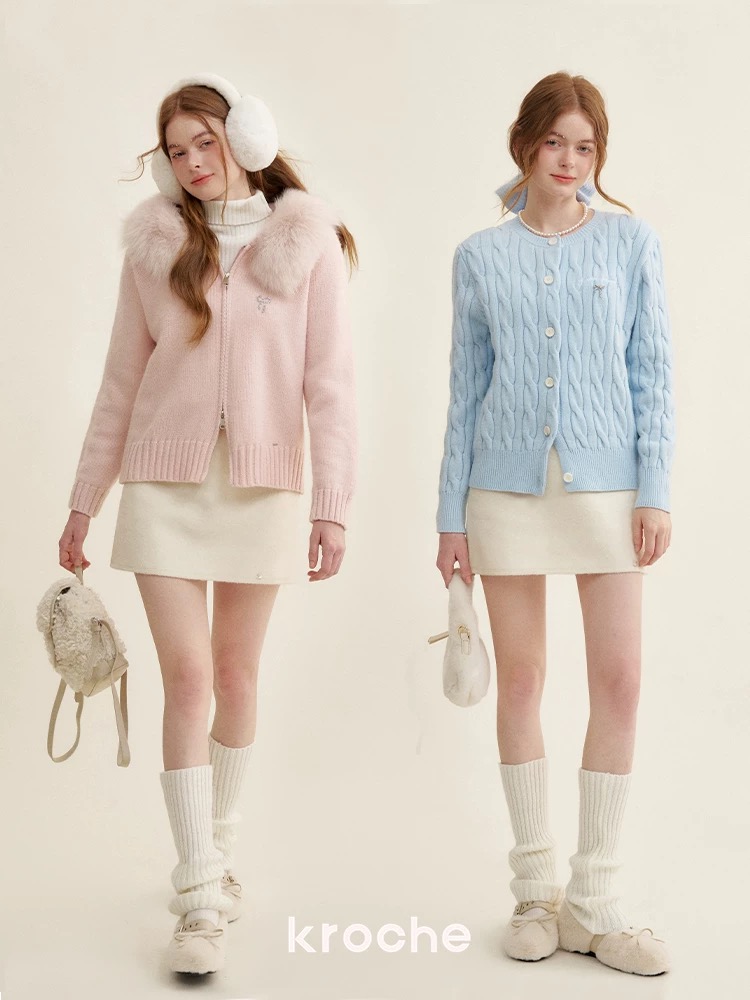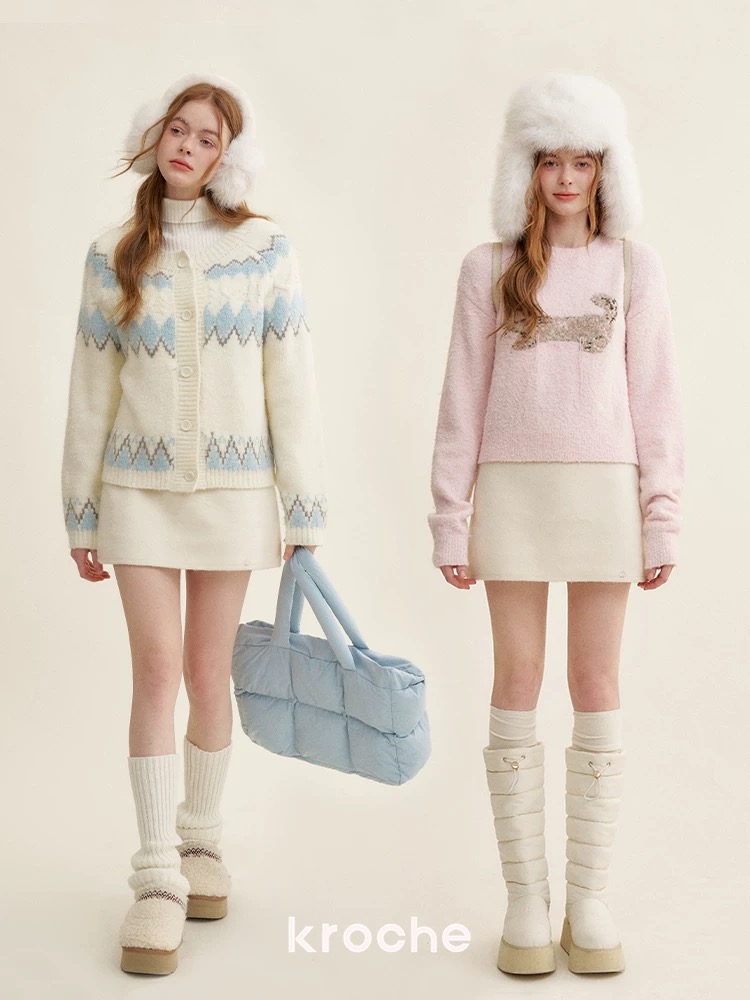 Eloberry【海岛之歌】2025秋冬新款费尔岛毛衣高领白色羊毛混纺提花冬季保暖女 S