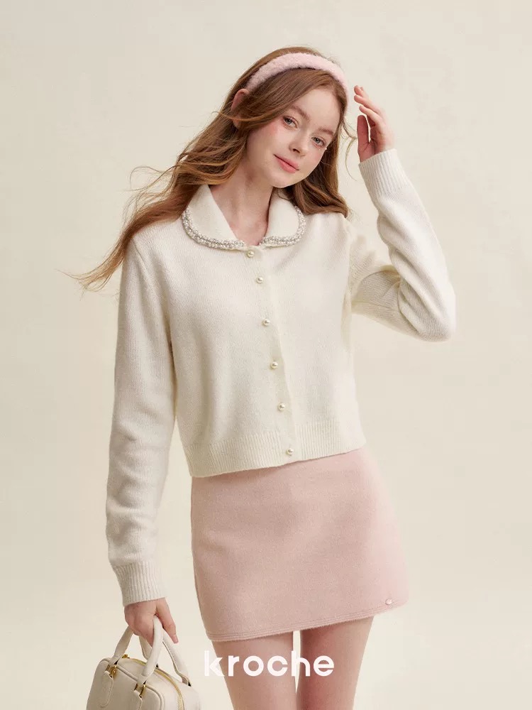 Eloberry【甜莓布朗尼】冬季粉色翻领加厚保暖蛋白皮羽绒服短款外套上衣女