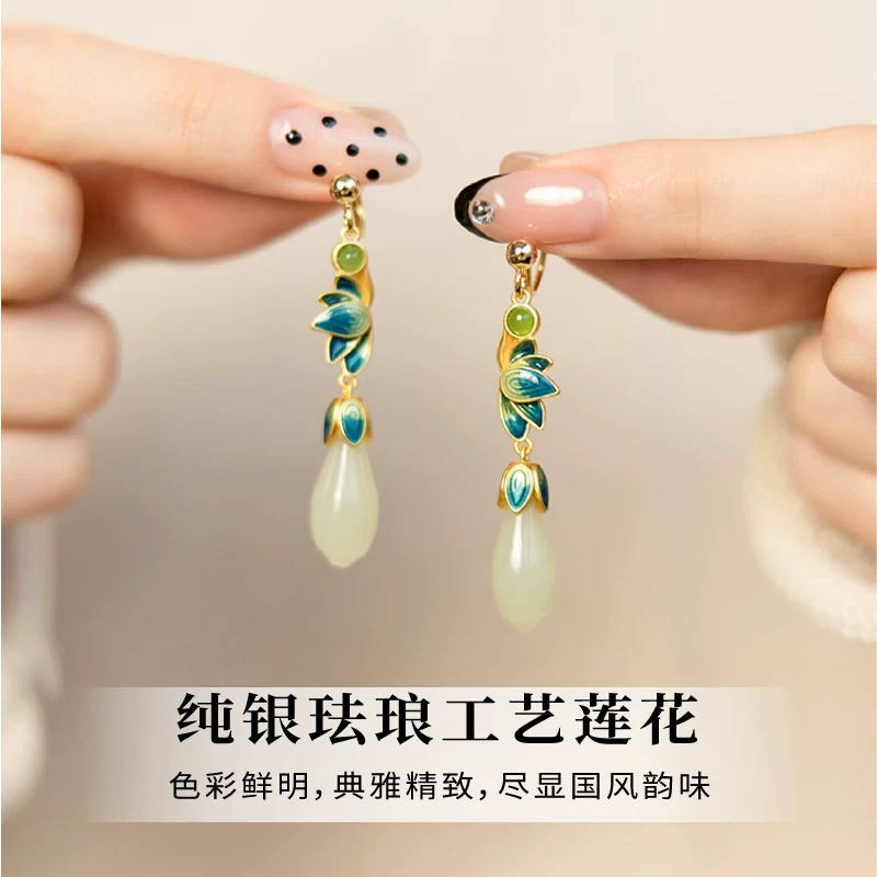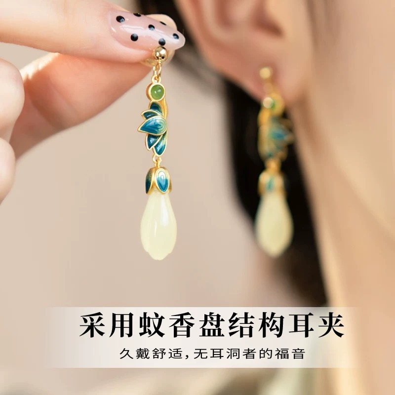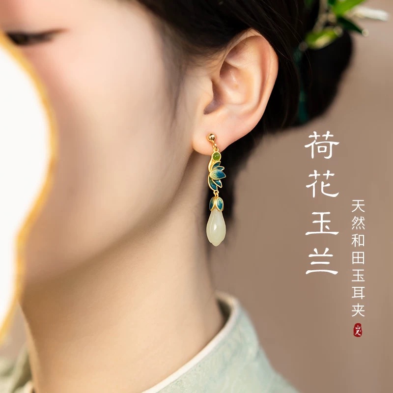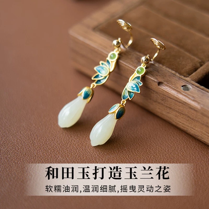 s925纯银玉兰花和田玉发簪新中式盘发流苏步摇头饰高级感簪子