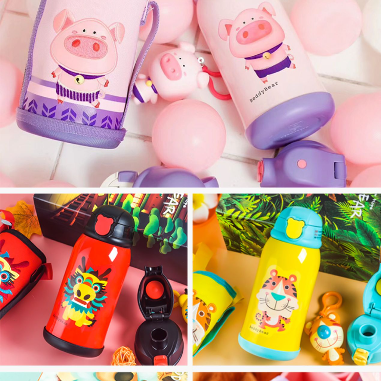 杯具熊儿童保温杯带吸管两用水壶女童婴儿小学生男宝宝幼儿园水杯 升级316不锈钢 官方正品 终身置换