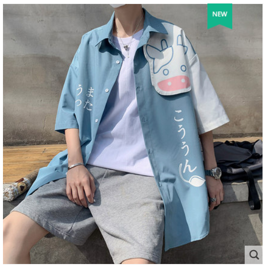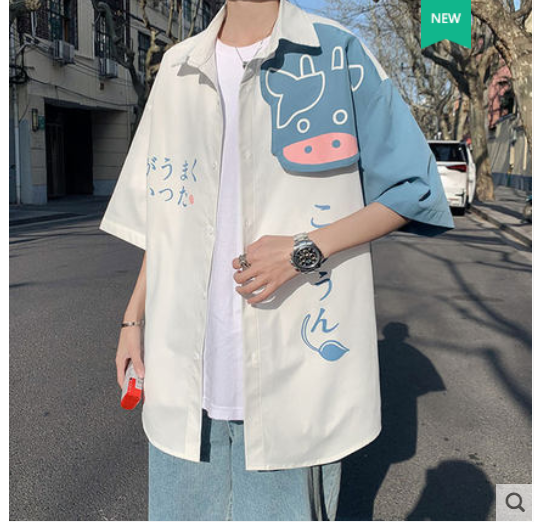 短袖衬衫男设计感ins夏季新款五分袖衬衣外套韩版潮流宽松情侣装 白色