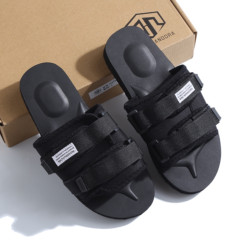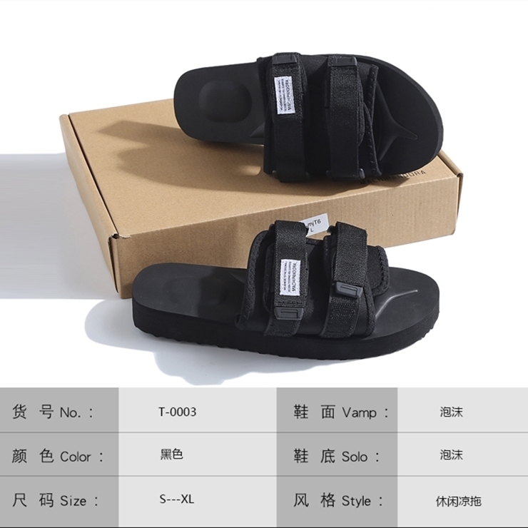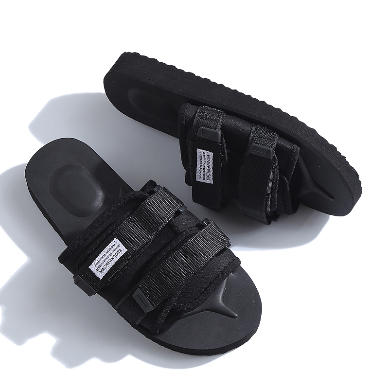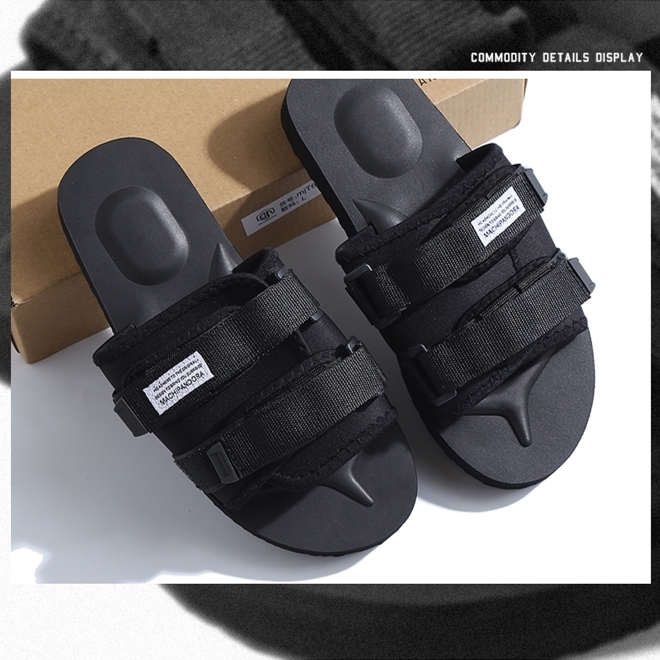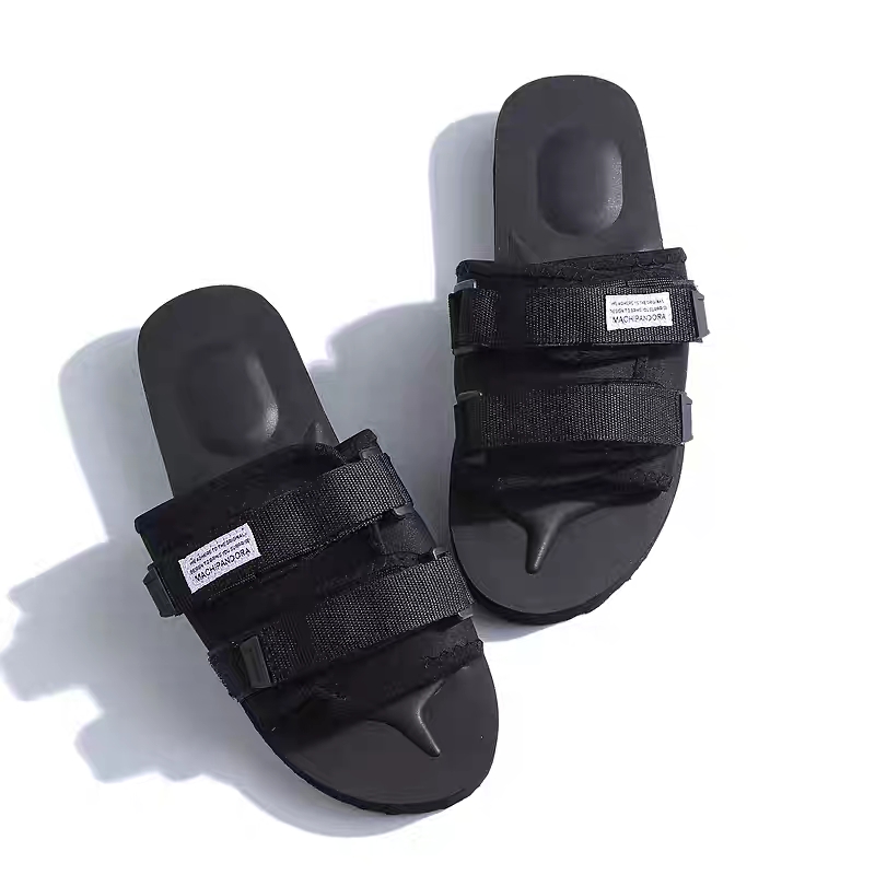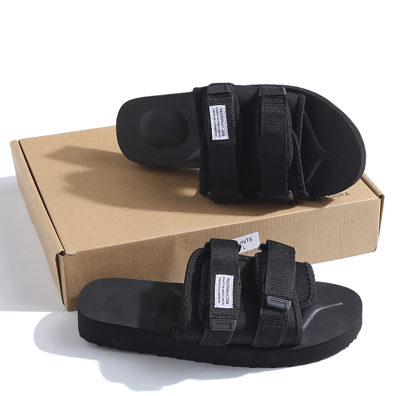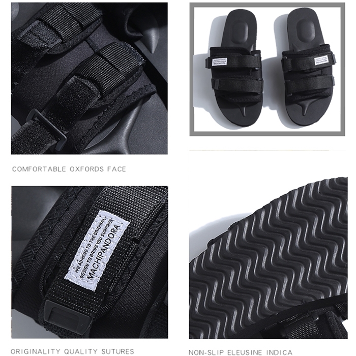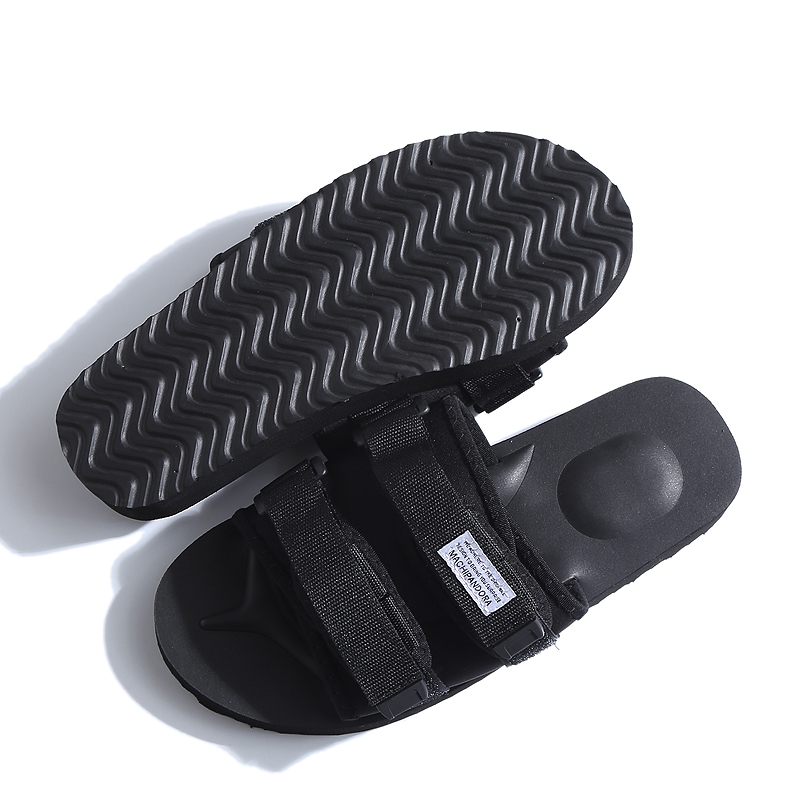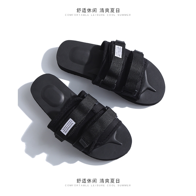 日系街头夏季新款情侣一字拖男防滑平底沙滩鞋魔术贴露趾拖鞋潮流