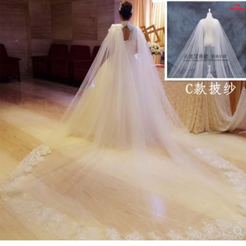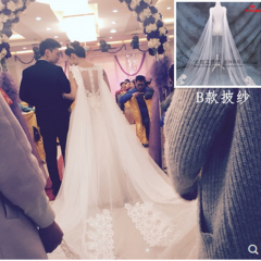 新娘结婚头纱超长新款韩式奢华披纱韩式双肩拖尾头纱婚纱新款软纱