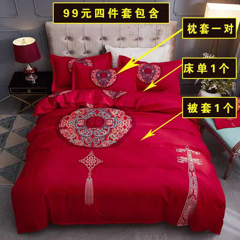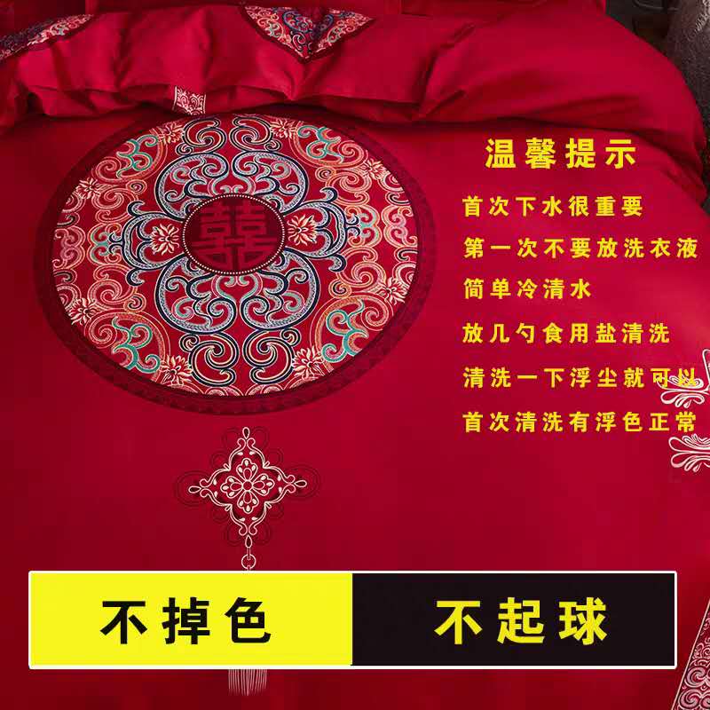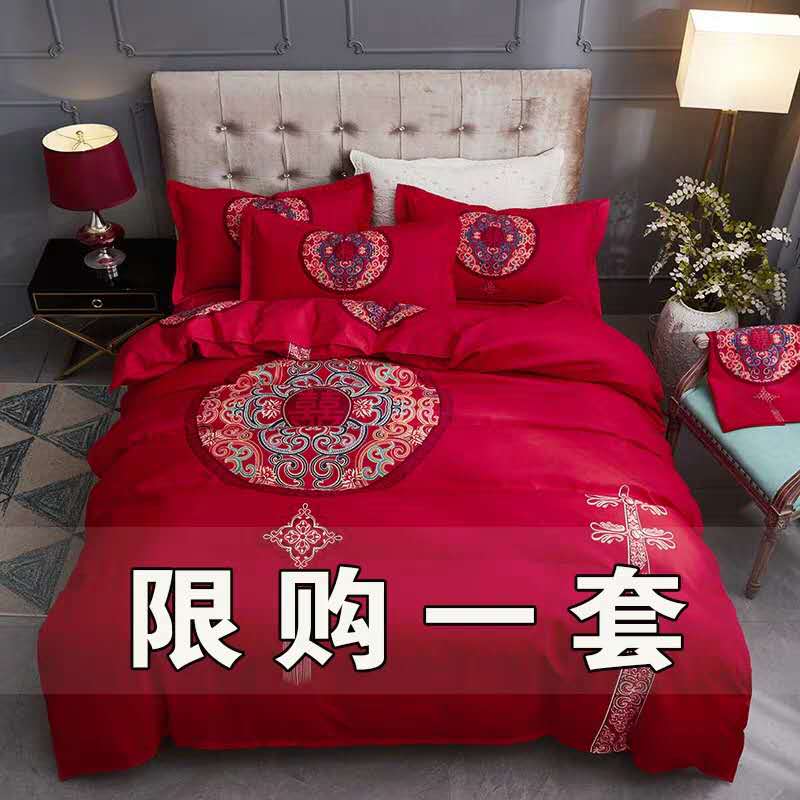 南极人(NanJiren)纯棉床单四件套全棉床上用品婚庆被套4件套