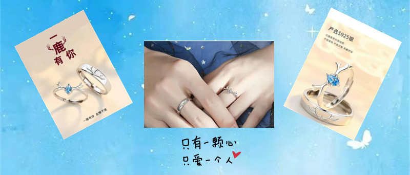 一鹿有你情侣戒指女男款潮纯银一对戒环时尚个性情人节七夕生日礼物送女友送老婆
