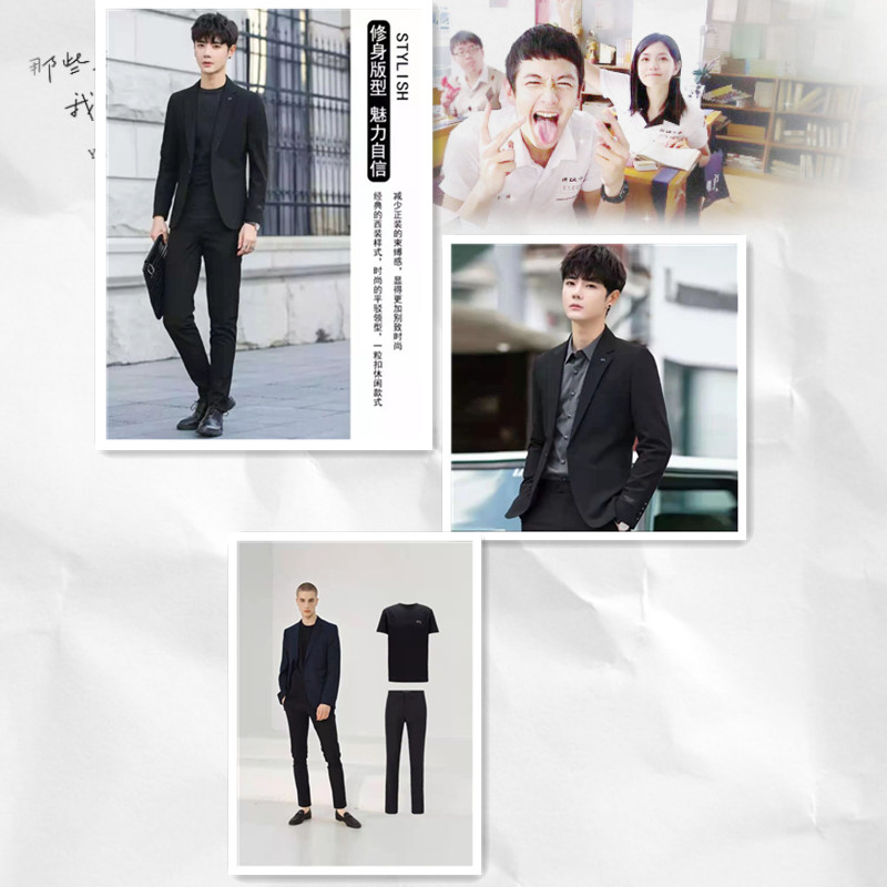 【三件套】春秋季男士假两件开衫修身韩版纯色毛衣外套领针织衫