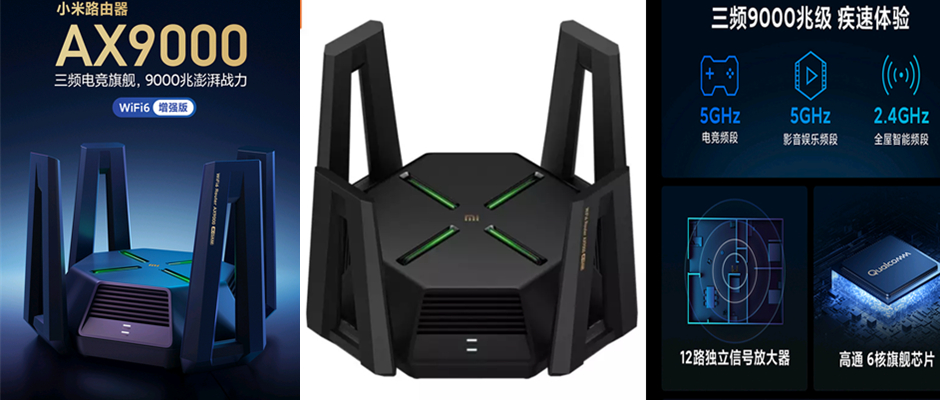 小米路由器 AX9000 5G双频WIFI6 高通6核处理器 9000M速率 无线穿墙千兆 家用智能 电竞路由 工业级