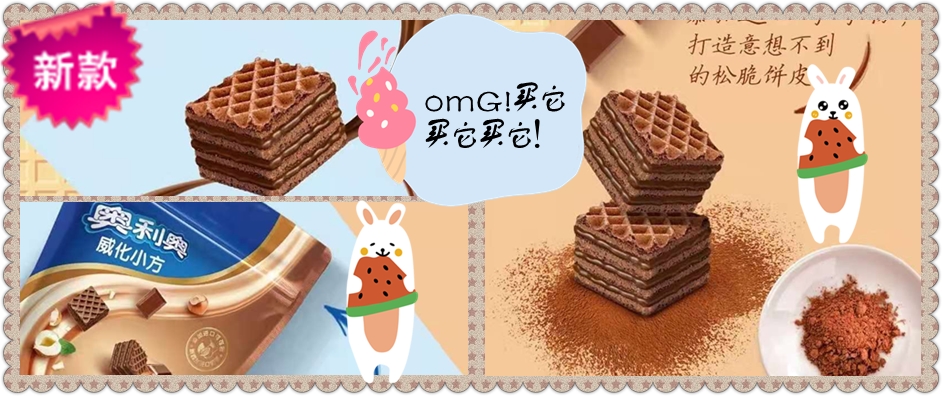 添加进口可可粉 打造意想不到 的松脆饼皮 柔顺巧克力酱 交织烘焙烤臻果香 无法抵挡的美味诱惑 精致小方造型一口一个 采用新西兰进口奶源