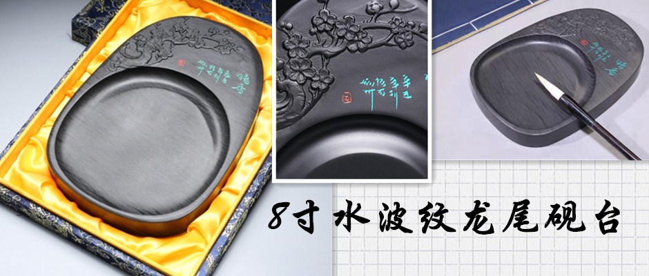 实用工艺臻品锦绣江南文房四宝大砚台安徽天然原石水波纹龙尾书法砚台