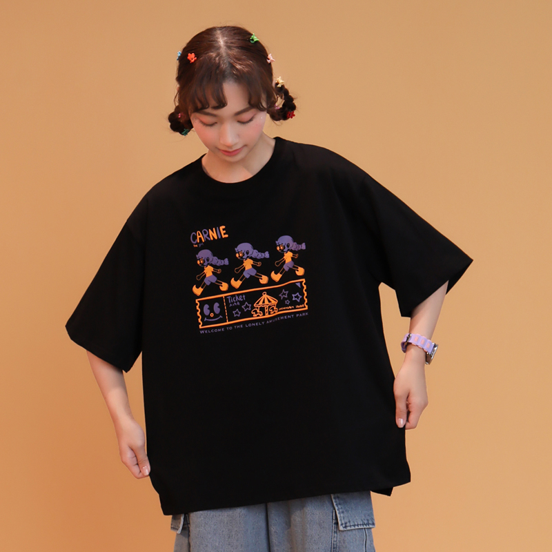 夏季新款日系无领POLO衫短袖女刺绣贴标T恤上衣宽松潮流t polo衫 黑色 s,m,l