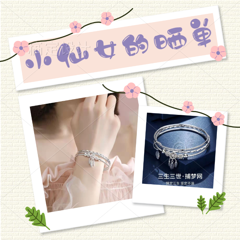 泰银捕梦网三生三世手镯女个性推拉式三圈闭口手环