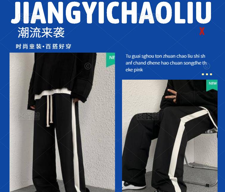 Rampo/乱步秋季运动裤男士直筒三道杠条纹宽松百搭卫裤休闲长裤子