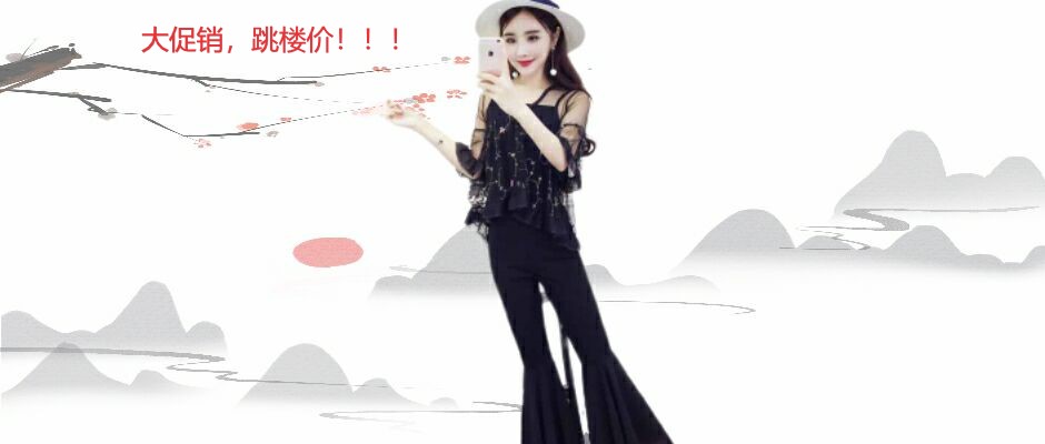 蔚缇2017夏季小花网纱+吊带+喇叭裤三件套女