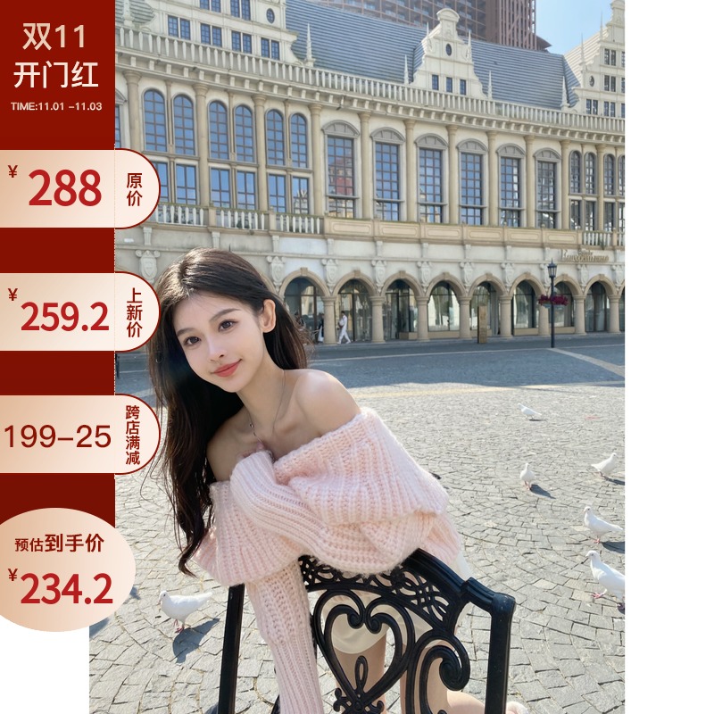宽松廓形版型 对身材包容度好 衬得人在宽松的衣服里更加娇小纤瘦 整件衣身粗线针法 会有温暖慵懒的氛围 后背有绑带可以自行调节领口的大小 可以拉上不露肩膀穿 也可以拉下来露肩穿着 更推荐一字肩穿法露出纤瘦后背 带点娇媚 惹人怜爱 拍照超好看 蝙蝠袖设计 可可爱爱