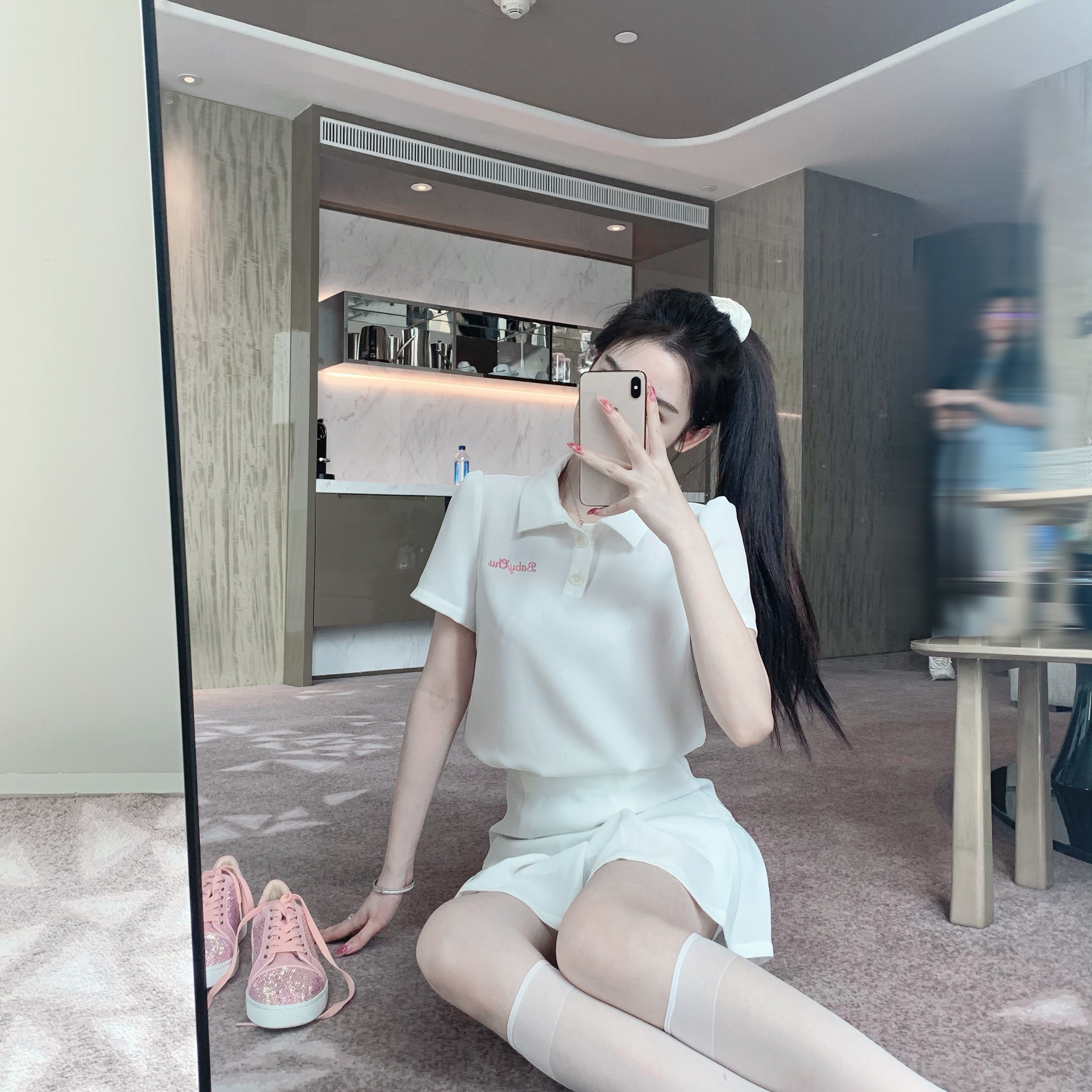 看起来很随意很日常 但泡泡袖在帮你显直角肩 小短裙在帮你拉长腿部比例 褶子做一半 不做满 避免太幼稚像校服 而且白色衣服有反光板效果让你在室外白到发光 都是不被察觉的小心机