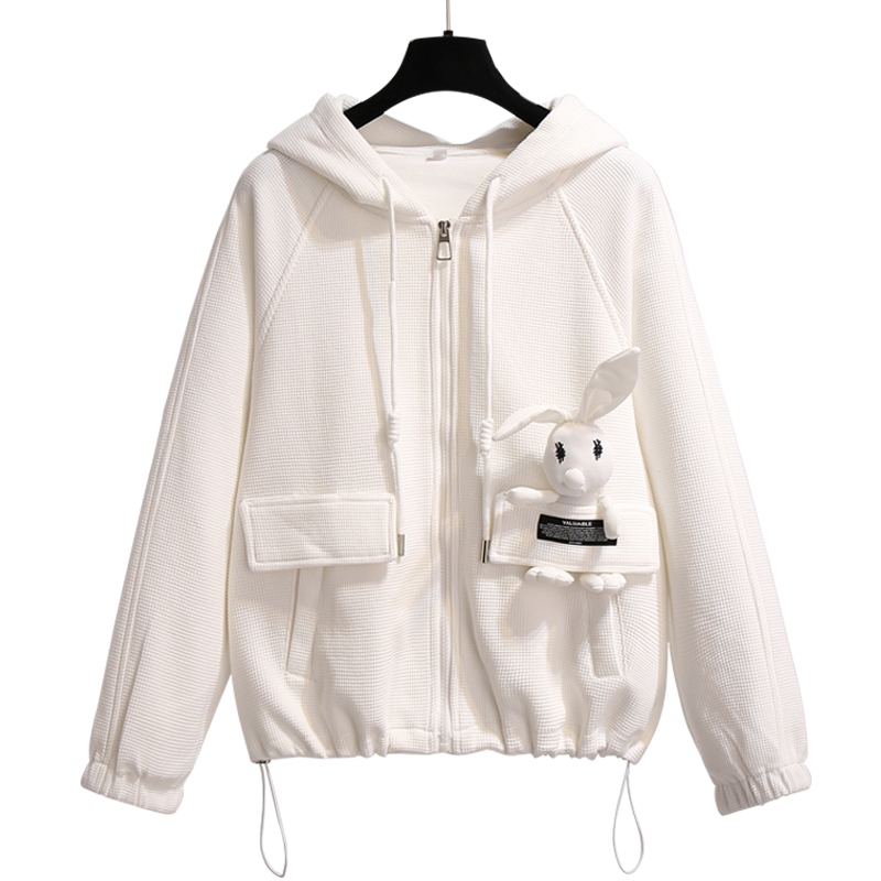 白色华夫格连帽卫衣外套女2021年ins早春秋季新款宽松棒球服夹克