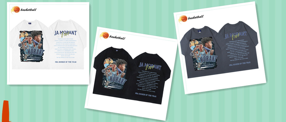 NBA贾莫兰特印花 美式高街头篮球衣复古圆领纯棉宽松T恤男半袖 短款体恤 黑色 s