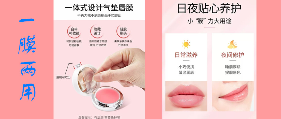 即可用做唇膜淡化我们的唇纹又可补水防开裂,携带方便自带小刷子和小镜子