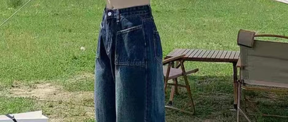 复古蓝阔腿牛仔裤女秋季新款美式宽松高腰显瘦垂感直筒拖地长裤潮