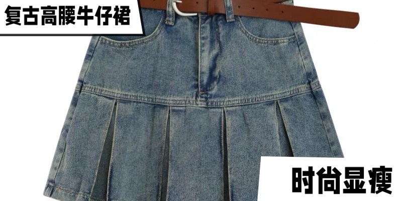 复古高腰辣妹显瘦牛仔裙 浅蓝 S