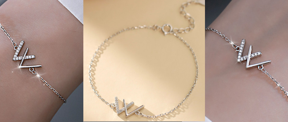 纯银W字母手链ins冷淡风小众设计女生闺蜜手饰简约高级感学生精致