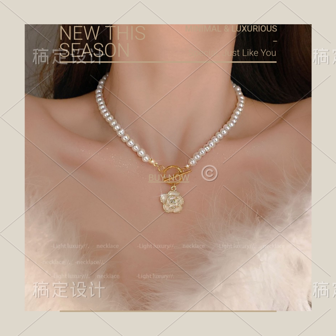山茶花珍珠项链女小众设计感吊坠2022年新款气质高级锁骨链毛衣链