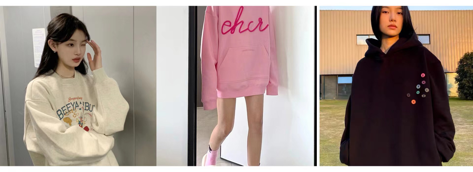 卫衣外套的材质柔软,既保证了透气感,又带有一定的保暖效果,很适合打造舒适休闲的日常造型,卫衣外套和卫衣相比,会稍稍显得成熟一些,而且最大的优点就在于穿脱很方便,套头卫衣比较适合冬季叠穿,能微微露出内搭从而展现层次感是最好不过了;而套头卫衣则主打甜美和减龄两大亮点。