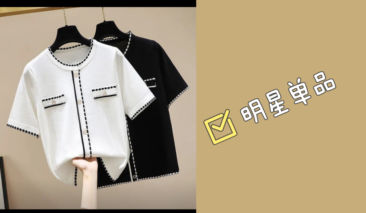小香风上衣女2023新款夏装白色t恤宽松外套短款圆领冰丝针织衫女