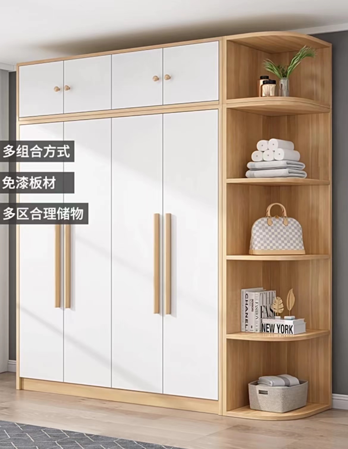 收藏商品 简约衣柜 衣柜卧室家用北欧简约现代平开门大衣橱带顶柜三四五门组装柜子
