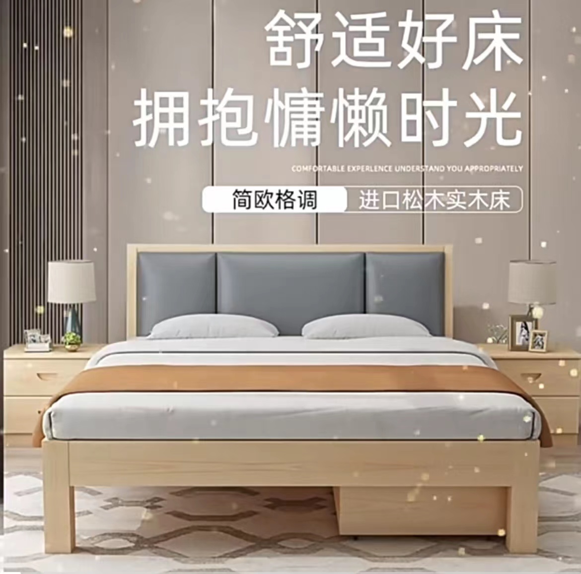 实木床现代简约1.8m经济型单人床出租房用简易松木1.5m床架双人床