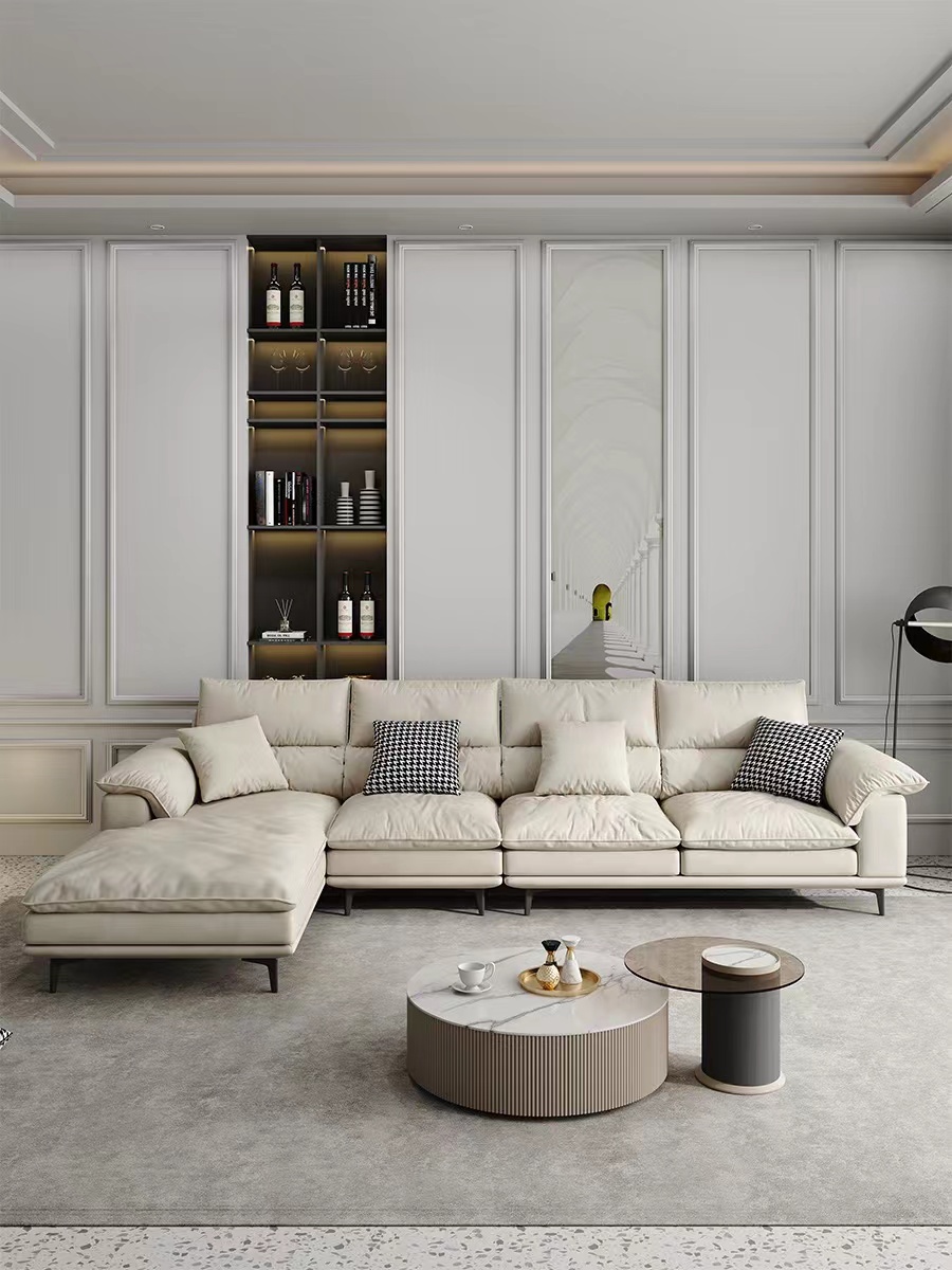 转角沙发客厅科技布简约轻奢现代意式极简贵妃布艺奶油风