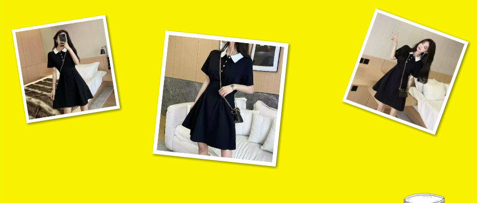 法国小众小个子娃娃领黑色收腰连衣裙女2020夏季新款赫本小黑裙子