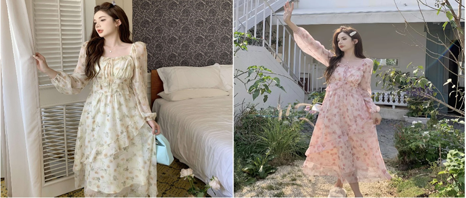 复古碎花裙
