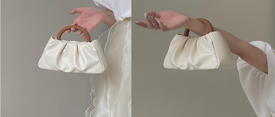 鹿子 2023小众新款女包木手柄褶皱云朵小手提包单肩斜挎迷你小包