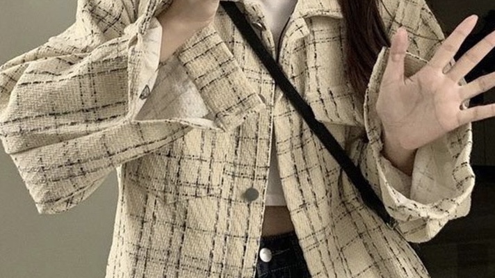 小香风杏色格子外套女春季2023年新款设计感小众法式复古夹克上衣