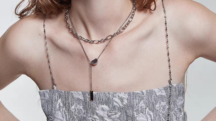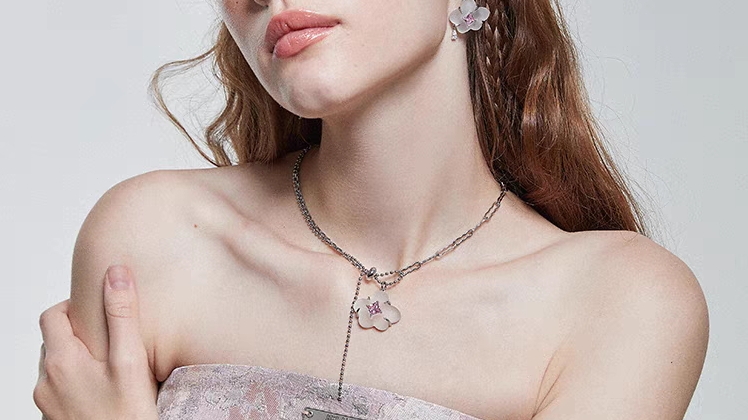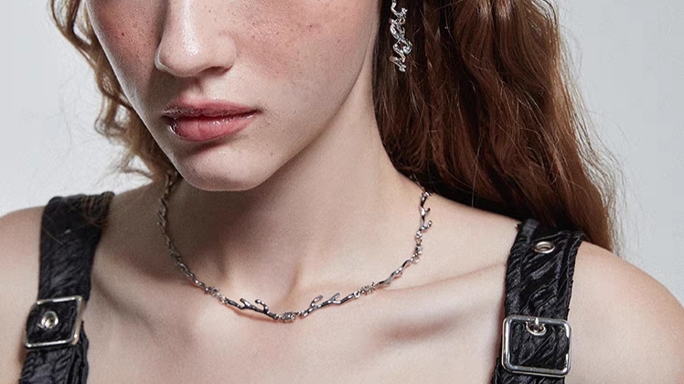 设计中性风重工抽象鹿角锆石高级感锁骨链