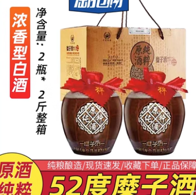 新疆白酒木垒三粮山粮糜子酒纯萃2瓶*2斤整箱4斤浓香型52度纯粮酒