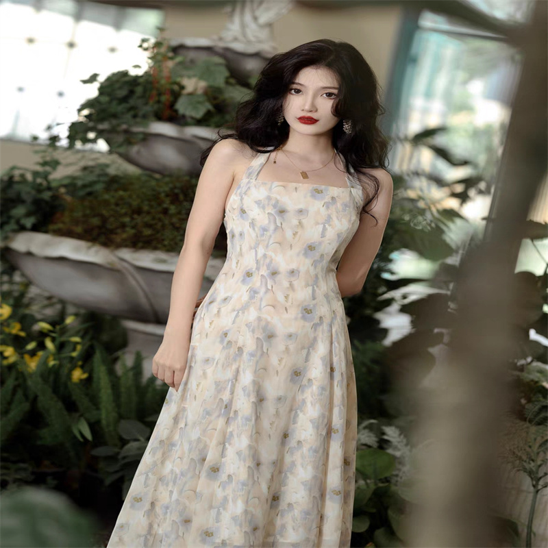 茶歇法式气质碎花连衣裙女夏季小众设计感初恋温柔绝美高端长裙子