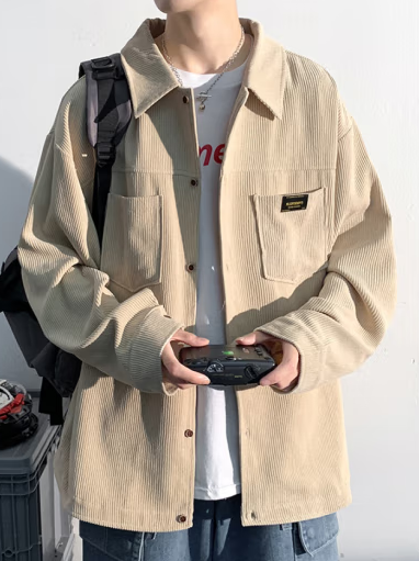 男春秋季潮流大学生休闲少年感长袖衬衫男生宽松夹克加肥加大上衣服