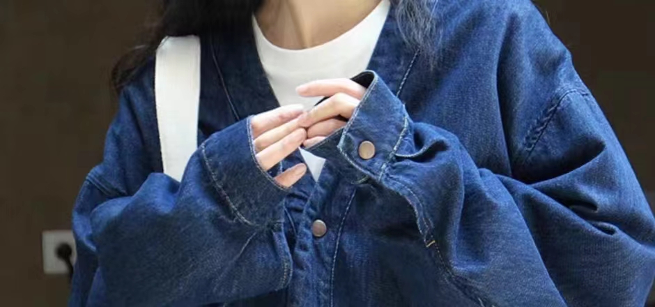 阿代家/日系复古 深蓝色牛仔外套女 设计感满满慵懒风 宽松休闲上衣