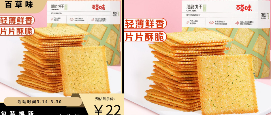 百草味 海苔味薄脆饼干308g/盒 薄饼办公室休闲零食非油炸早餐