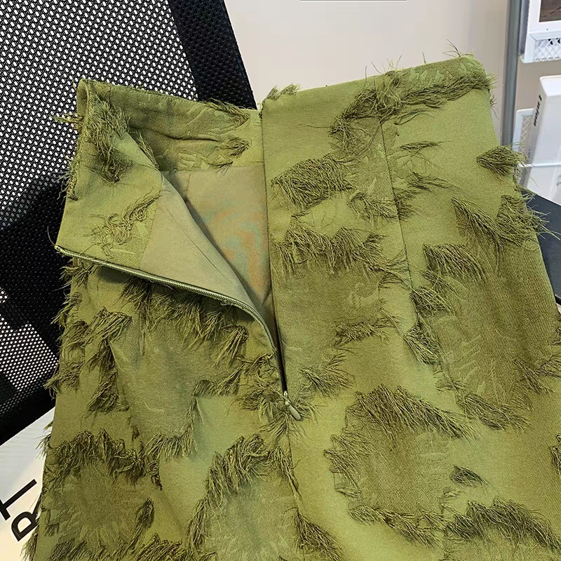 立体提花高腰修身盘扣a字短裙子