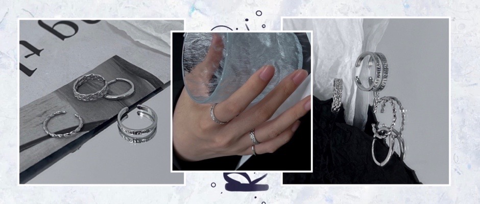 麻花开口设计四件套装戒指冷淡风酷潮指环可调节手饰品