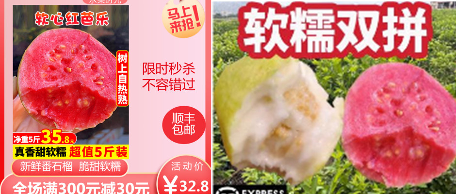 时光水果-广西软糯红心5斤新鲜水果番石榴脆甜软糯胭脂红整箱包邮