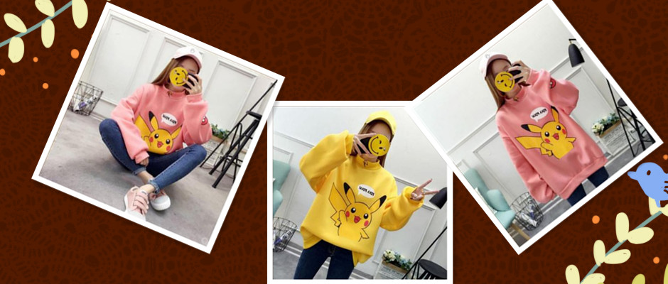 卫衣女士韩版潮流皮卡丘秋季上衣宽松情侣ins春秋款衣服秋装外套