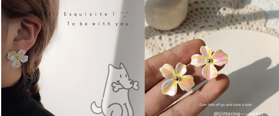 春天款~925银针树脂彩光镭射效果花朵耳钉女日韩简约唯美耳饰耳环