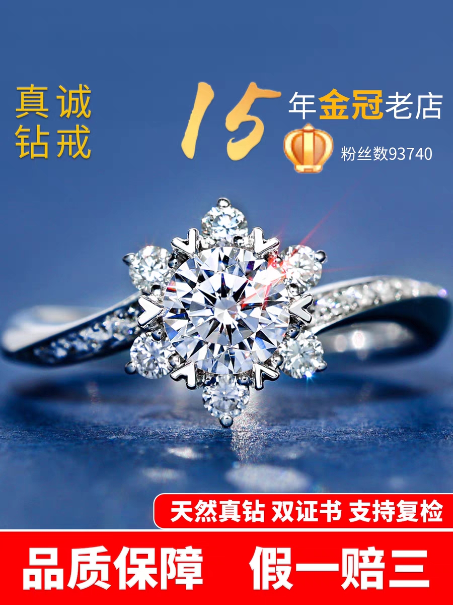 真诚钻戒一克拉1钻石戒指女真钻裸钻定制GIA婚戒男士求婚铂金50分
